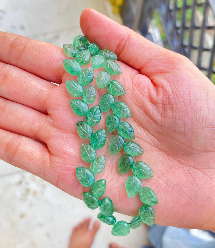 ชื่อผลิตภัณฑ์:Briolette แกะสลักลูกปัดอัญมณีสีเขียวรูปใบควอตซ์สตรอเบอรี่