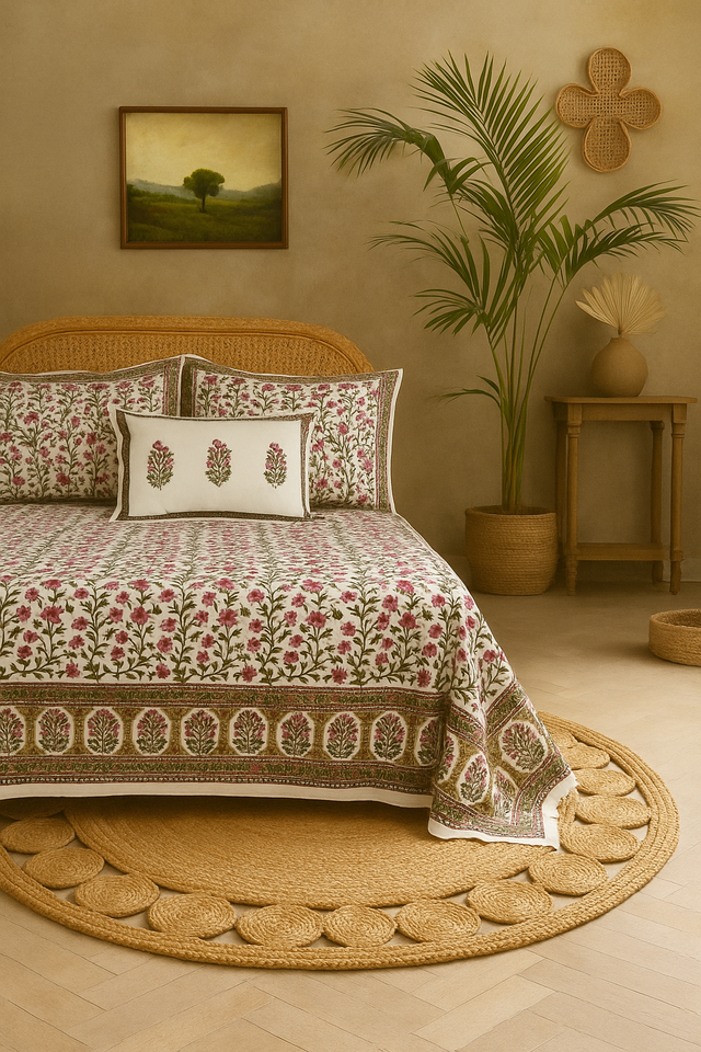 พรมปอกระเจาทำด้วยมือธรรมชาติแบบ100% พรมทรงกลมพรมดีไซน์โบฮีเมียนสำหรับห้องนอนห้องนั่งเล่นและโรงแรมพรมอินเดียชั้นนำที่ผลิตในเมืองชัยปุระ