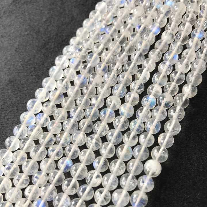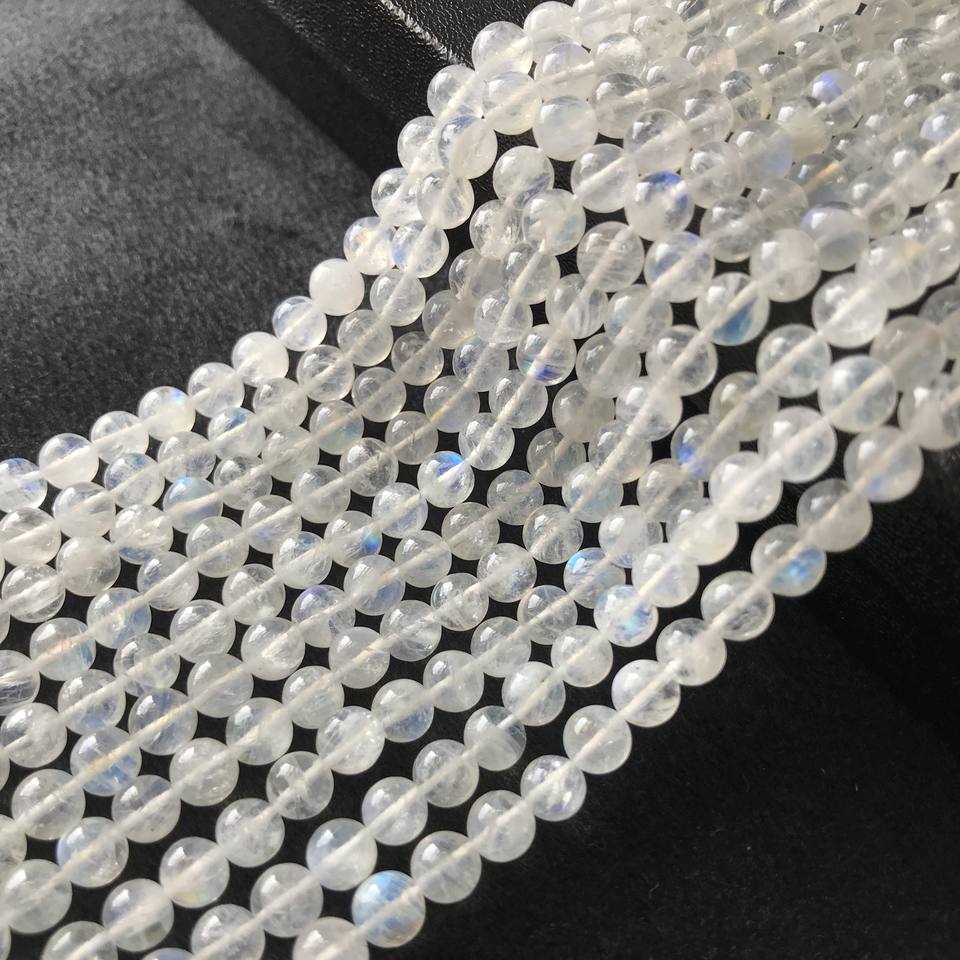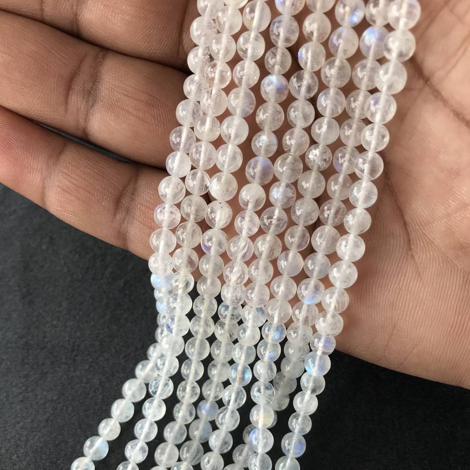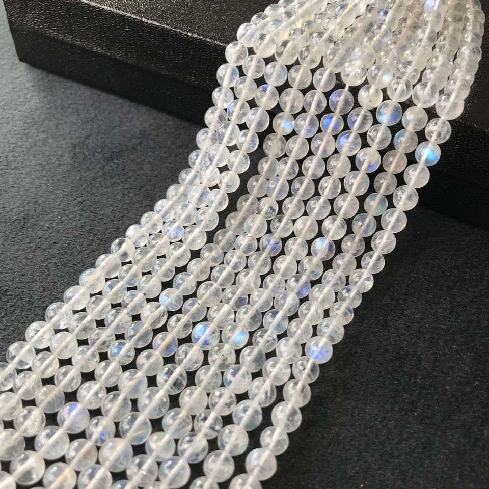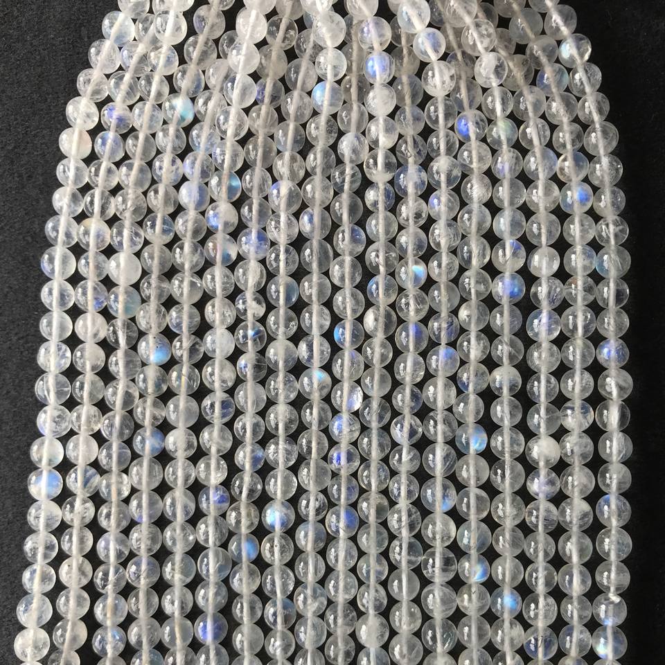ลูกปัดมูนสโตนเรนโบว์เกรด AA แท้ 100% รับรองโดย IGI ขนาด 4.5 มม.-6 มม. สีฟ้าไฟ หลายสีไฟ วิวาซ เจมส์ จาอิปุร์