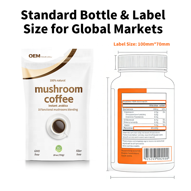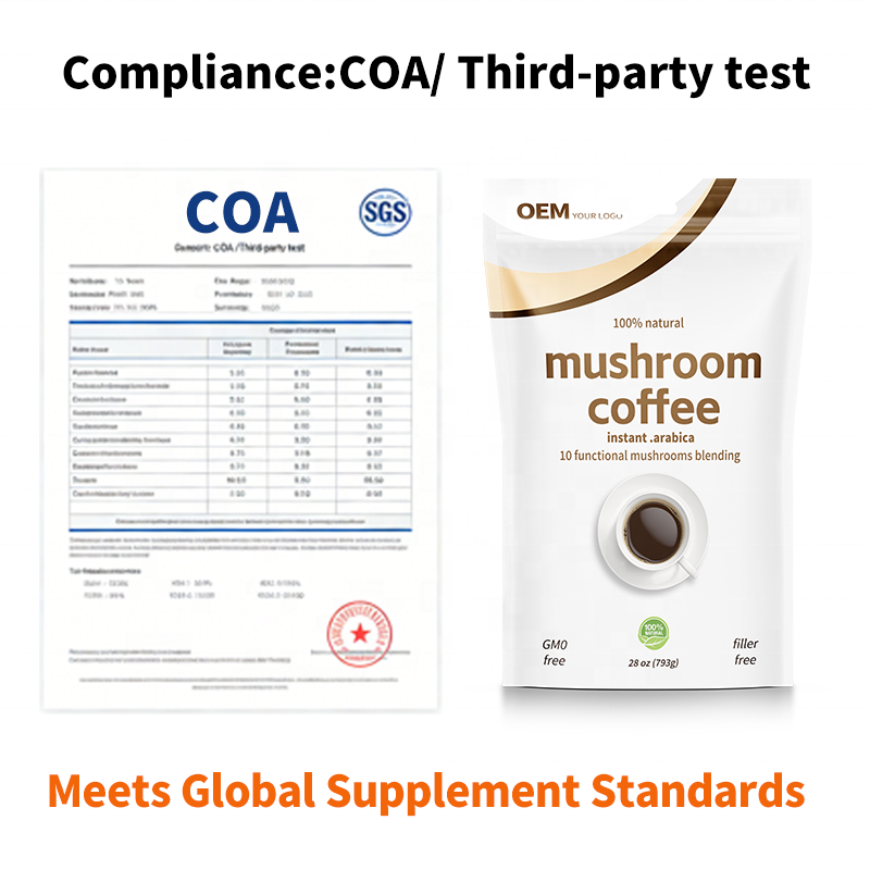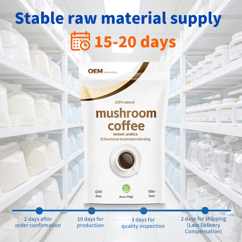 ผงกาแฟไมโครเห็ดสำเร็จรูป 100% จากธรรมชาติ จัดส่งเสถียร สำหรับผู้ขาย Amazon FBA ได้รับการรับรอง COA ผ่านการทดสอบโดยบุคคลที่สาม