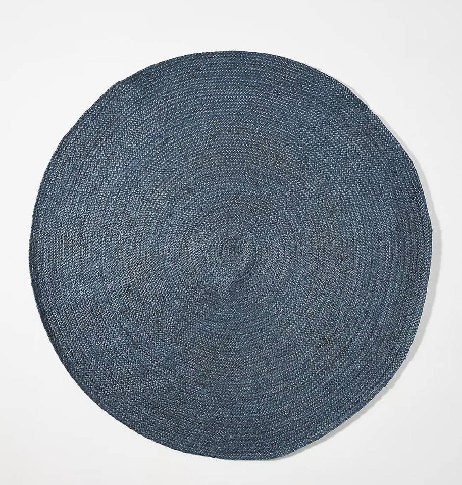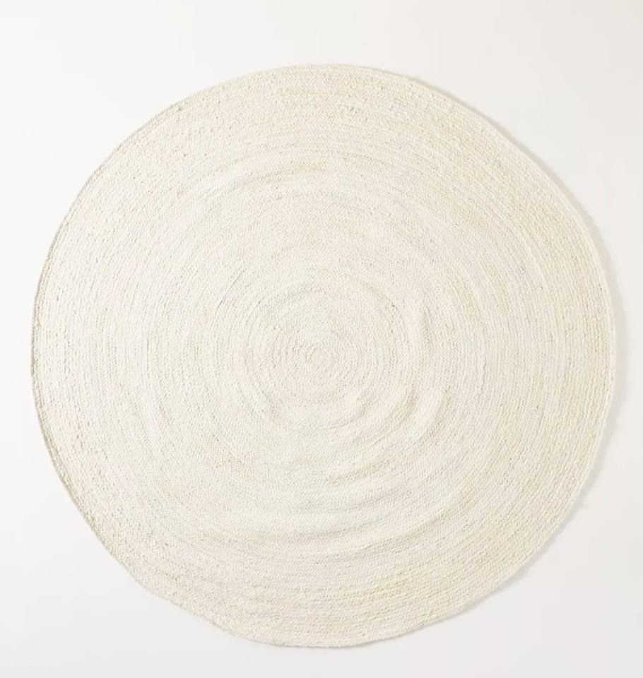 พรมปูพื้นทรงกลมลายสแกลลอป ทำจากป่านปอกระเจาธรรมชาติ 100% ถักทอด้วยมือ สไตล์โบโฮ ฟาร์มเฮาส์ เป็นมิตรกับสิ่งแวดล้อม ขนาดสั่งทำได้
