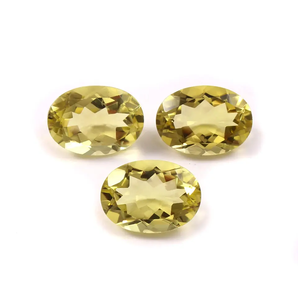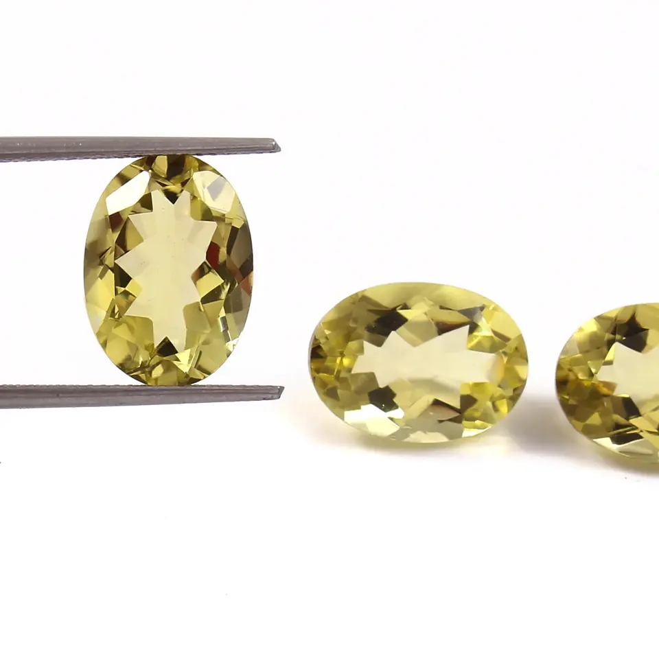 พลอยเลมอนควอทซ์ธรรมชาติ100% พลอยเจียระไนแบบเหลี่ยมเพชรพลอยทรงรีหินควอตซ์ทรงหลวมขนาด10x14MM