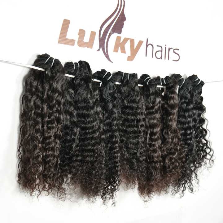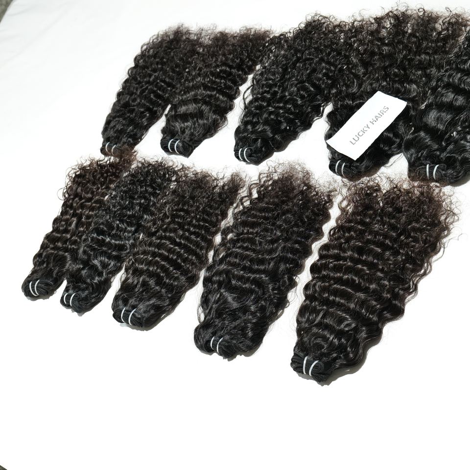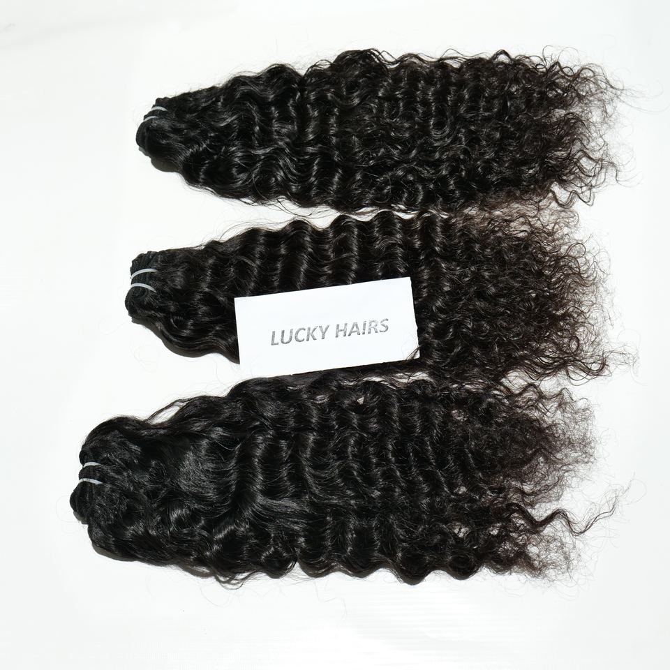 ผมแท้ธรรมชาติ 100% แบบอินเดีย แบบมัด ลอนคลื่นสีดำ จัดเรียงเกล็ดผม ลอนลึกแบบหลวม ต่อผมแบบเย็บสองชั้นด้วยเครื่องจักร