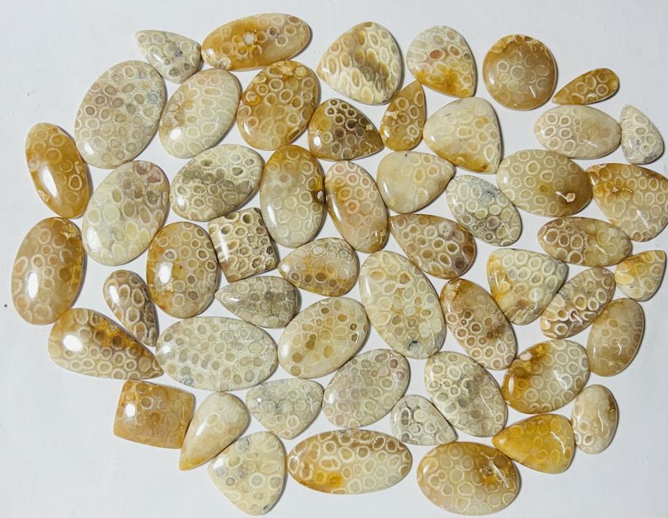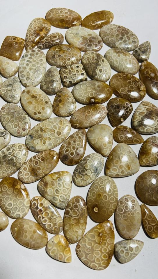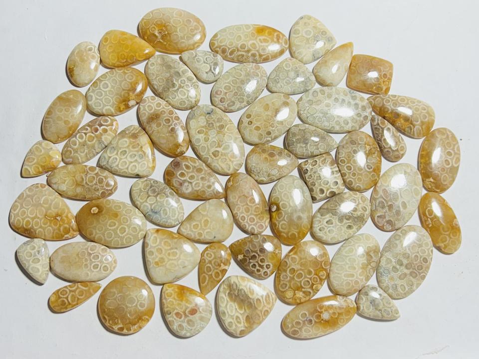 100% อัญมณีธรรมชาติหลวมรักษาฟอสซิลปะการัง Cabochon หินอัญมณีขนาดสูงได้รับการรับรองจากบุคคลที่สามสำหรับเครื่องประดับ