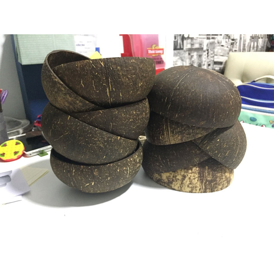ชุดช้อนชามกะลามะพร้าวธรรมชาติ100% กันน้ำขัดเงาด้วยมือพร้อมโลโก้ที่กำหนดเองสำหรับตกแต่งบ้านโดยตรงจากเวียดนาม