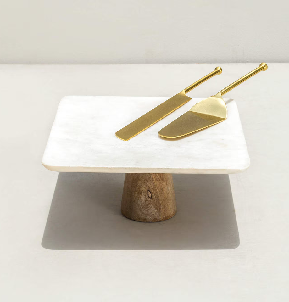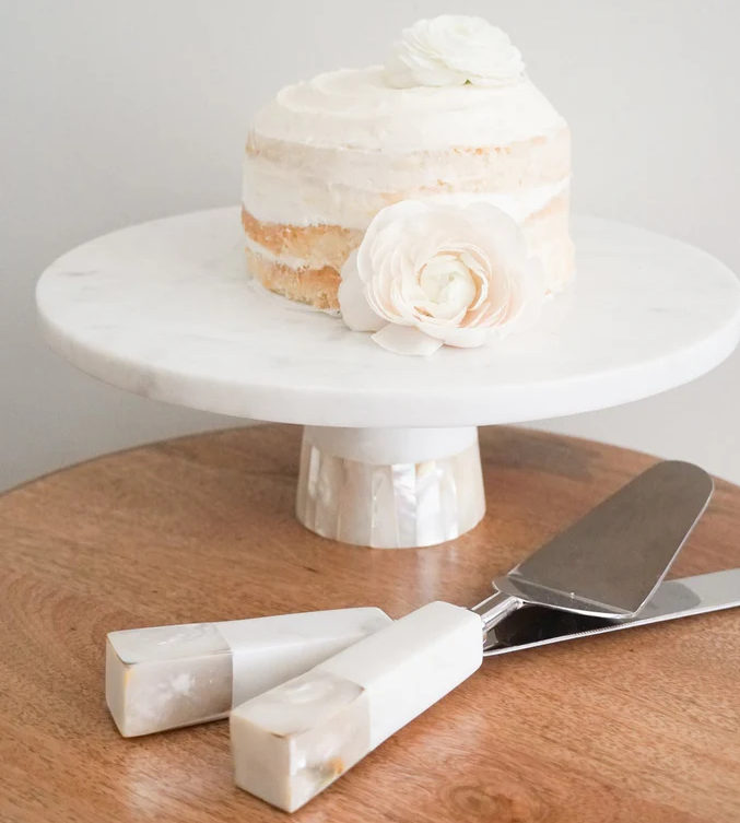 แท่นวางเค้กหินอ่อนธรรมชาติแบบ100% อุปกรณ์บนโต๊ะอาหารสำหรับตกแต่งเค้กที่เสิร์ฟทรงกลม
