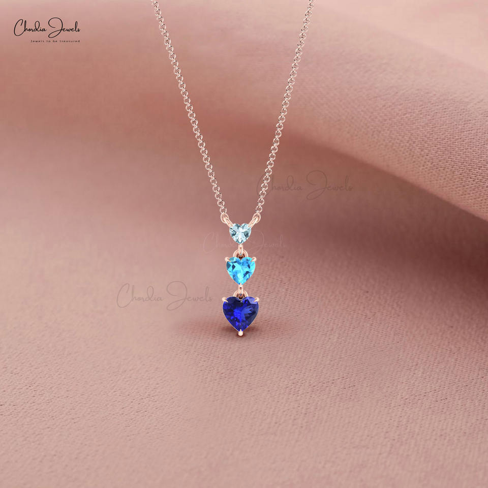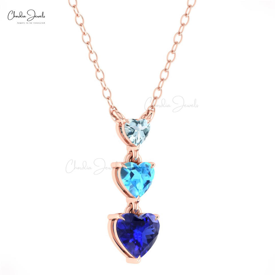 สร้อยคอพลอยหลากชนิดธรรมชาติ 100% ทองคำแท้ 14k ประดับแทนซาไนต์และอะความารีน สร้อยคอห้อยระย้า ขายส่ง เครื่องประดับท็อปาซทรงหัวใจ