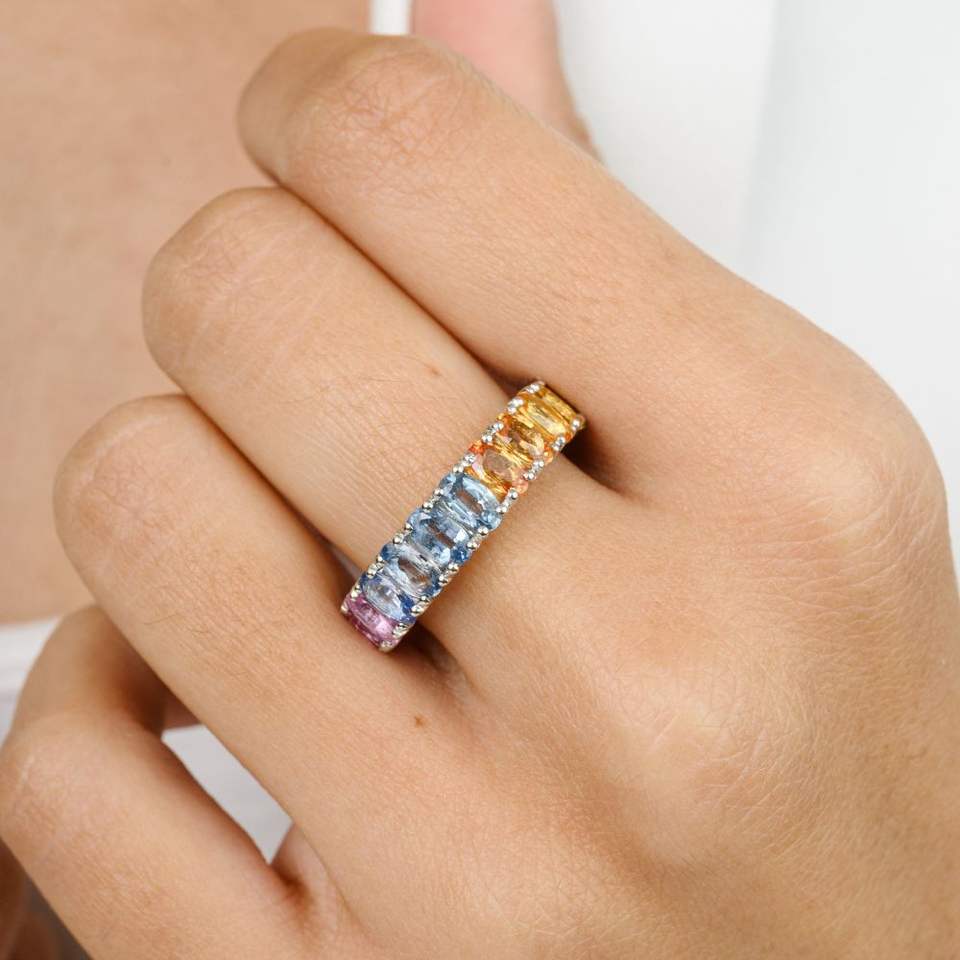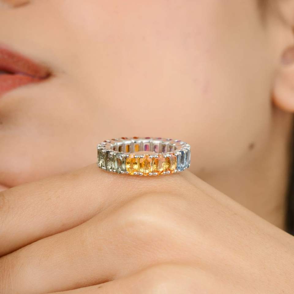 100% อัญมณีหลากสีธรรมชาติวงแหวนแหวนแหวนแหวนแต่งงานยาว18K ทรงวงรีตัดเป็นวง