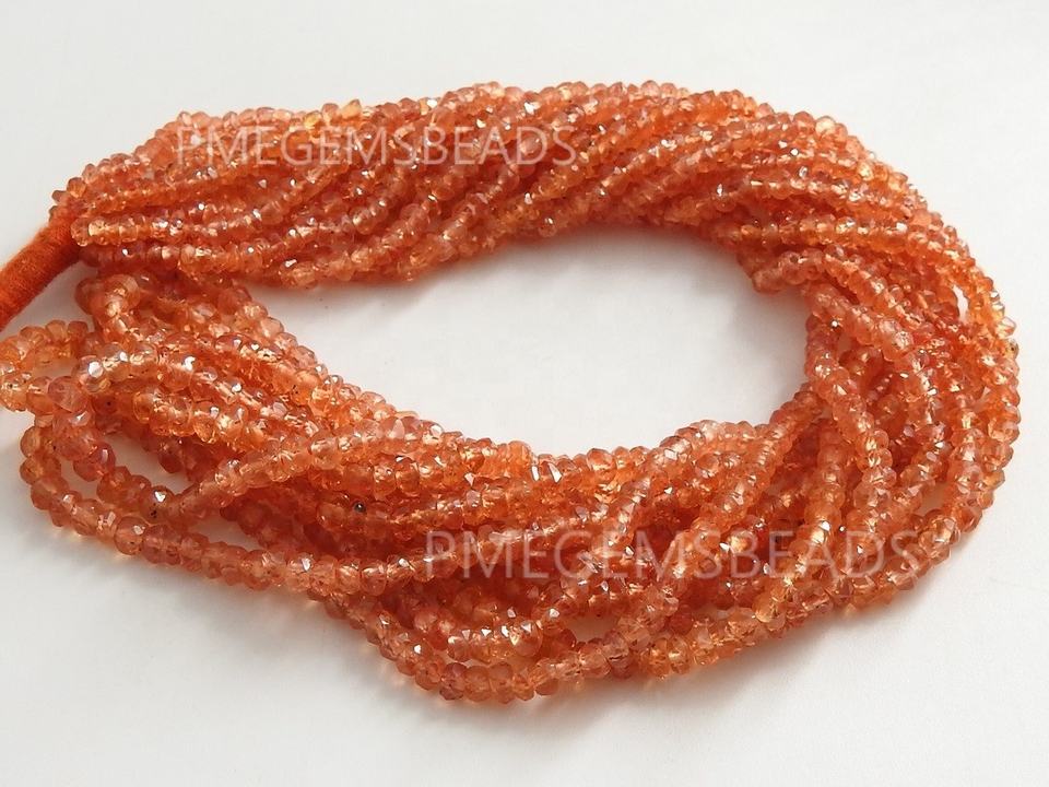 ลูกปัดแซฟไฟร์สีส้มธรรมชาติ 100% ทรงกลมเหลี่ยมเพชรพลอย ขนาด 2 มม. รู 0.50 มม. ความยาว 8 นิ้ว หินหลวมสำหรับผู้ผลิตเครื่องประดับ สร้อยคอ ผู้ค้าส่ง