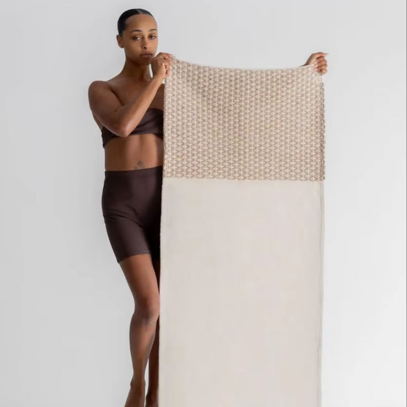 เสื่อโยคะออร์แกนิกธรรมชาติ100% เสื่อโยคะผ้าฝ้ายผสมระหว่างดินเหนียวเพชรและครีมเสื่อสำหรับออกกำลังกายและนั่งสมาธิแบบพกพา-& เป็นมิตรกับสิ่งแวดล้อม