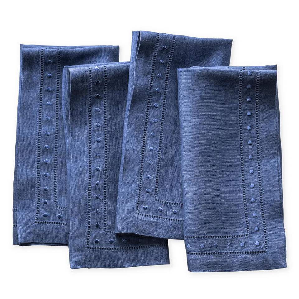 100% Natural Organic Linen Tea Napkins Fine Dining Table Embroidered Swiss Dots Double Hemstitched Customizable Napkins Weddings