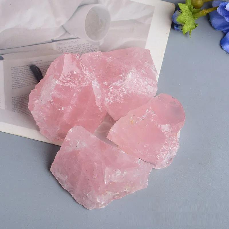 หินควอตซ์ธรรมชาติสีชมพูกุหลาบ100% หินคริสตัลหินบำบัดแร่หินตัวอย่าง