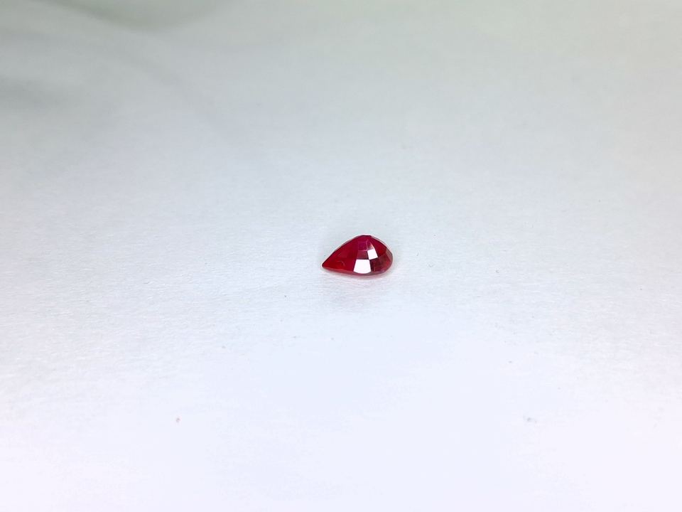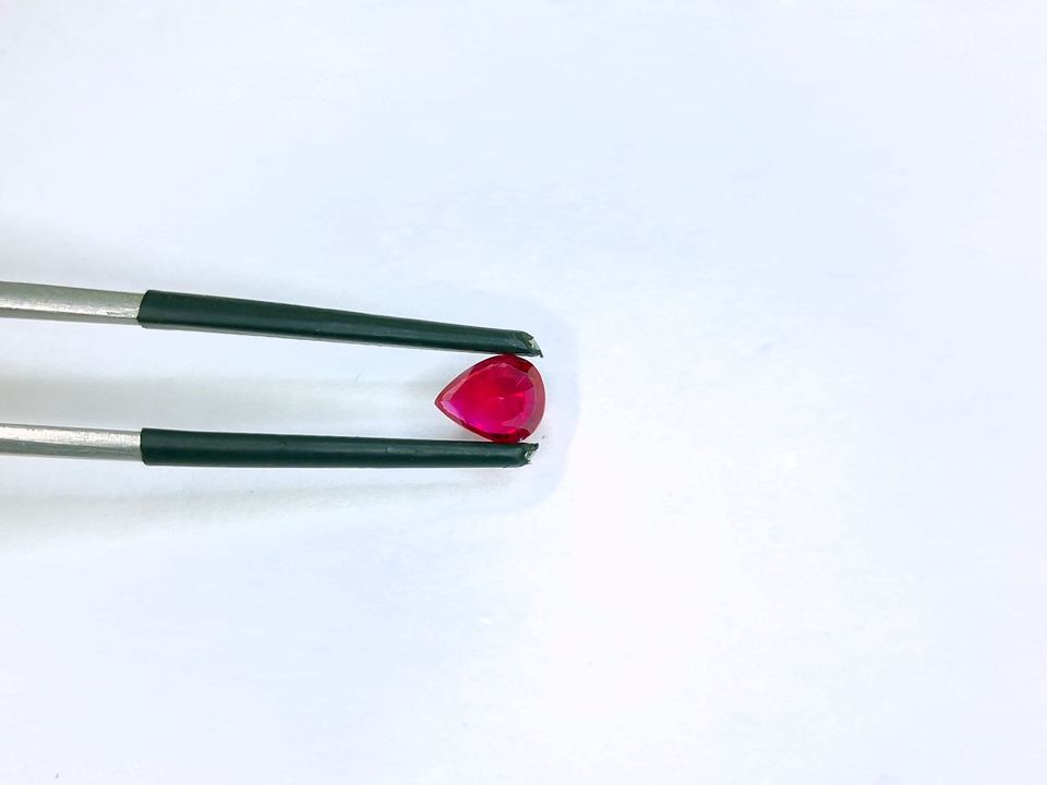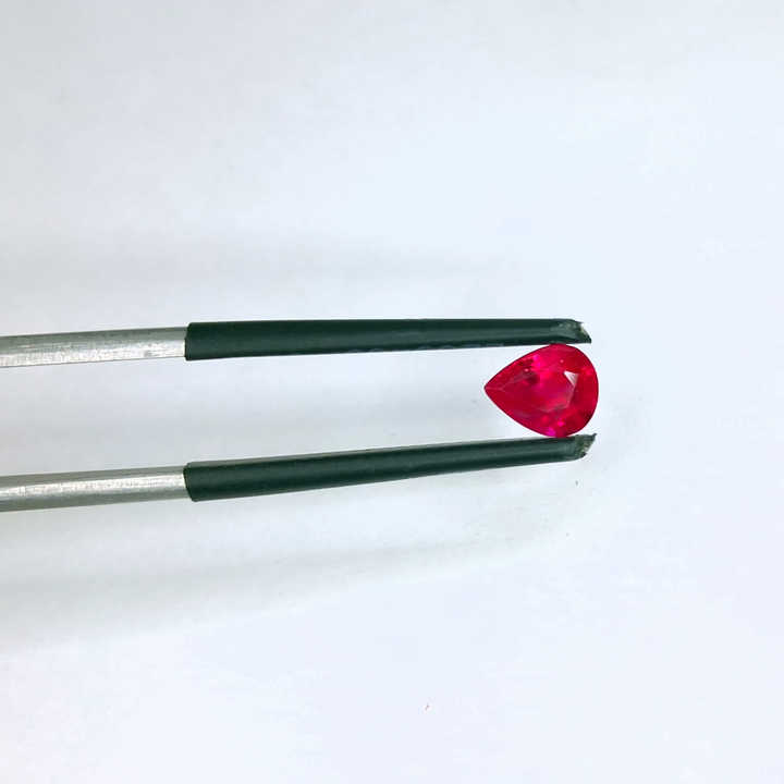 พลอยทับทิมพม่าทรงลูกแพร์คุณภาพพรีเมียมธรรมชาติ 100% ขนาด 0.84 กะรัต สีแดงเข้ม ทรงเหลี่ยมเจียระไน สำหรับทำจี้เครื่องประดับ