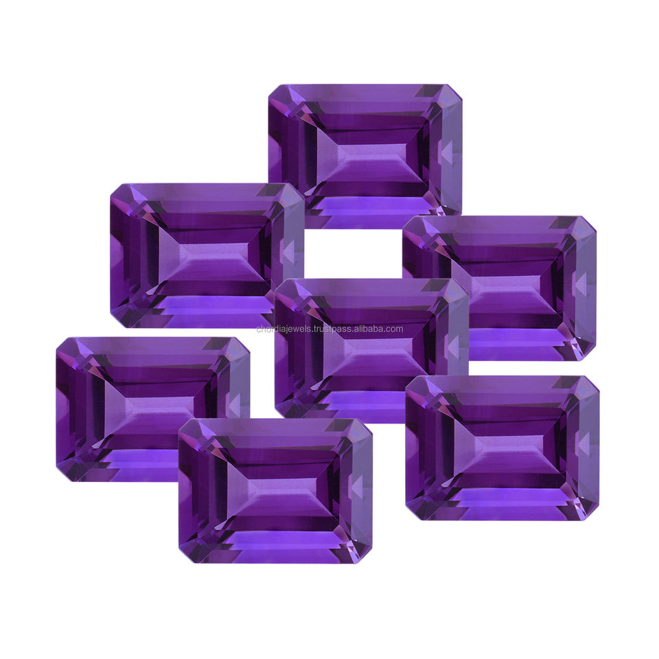 พลอยอเมทิสต์สีม่วงธรรมชาติ9X7mm-20X15mm อัญมณีรูปแปดเหลี่ยมมรกตแบบหลวม100%