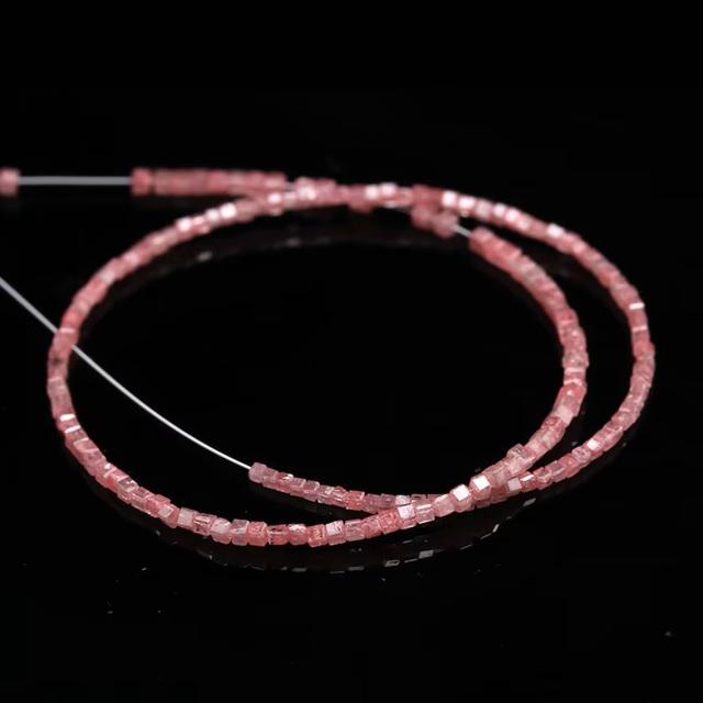 ลูกปัดเพชรชมพูธรรมชาติแท้หายาก รูปทรงลูกบาศก์ ขนาด 7 นิ้ว แบบเจียระไน ขายส่งจำนวนมาก