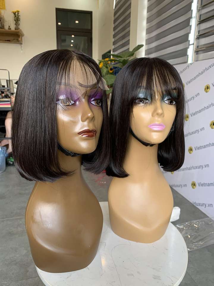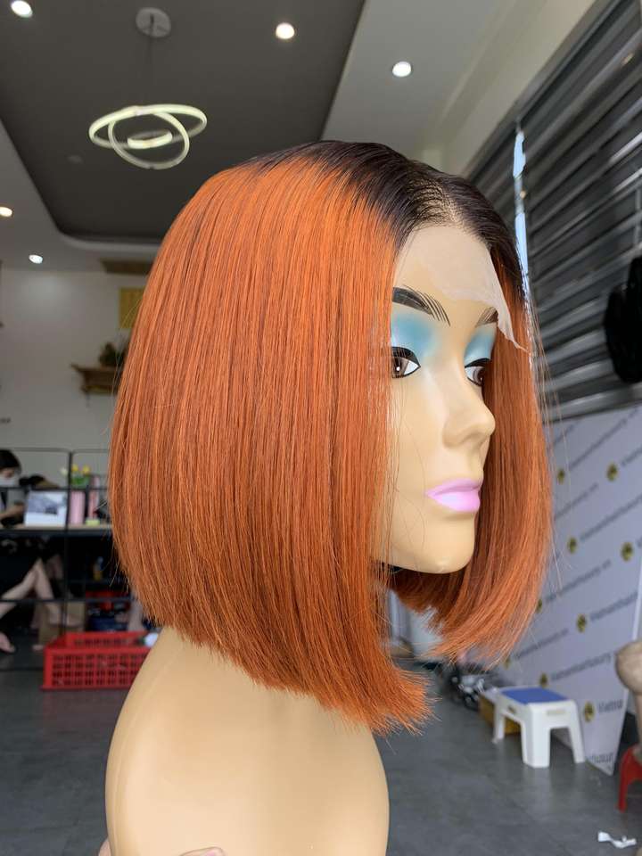 วิกผมเรมีดิบธรรมชาติ100% ตัดทื่อ/บ๊อบกระดูกตรงด้านเดียวขนาด300กรัม10 "วิกผมทอปิด