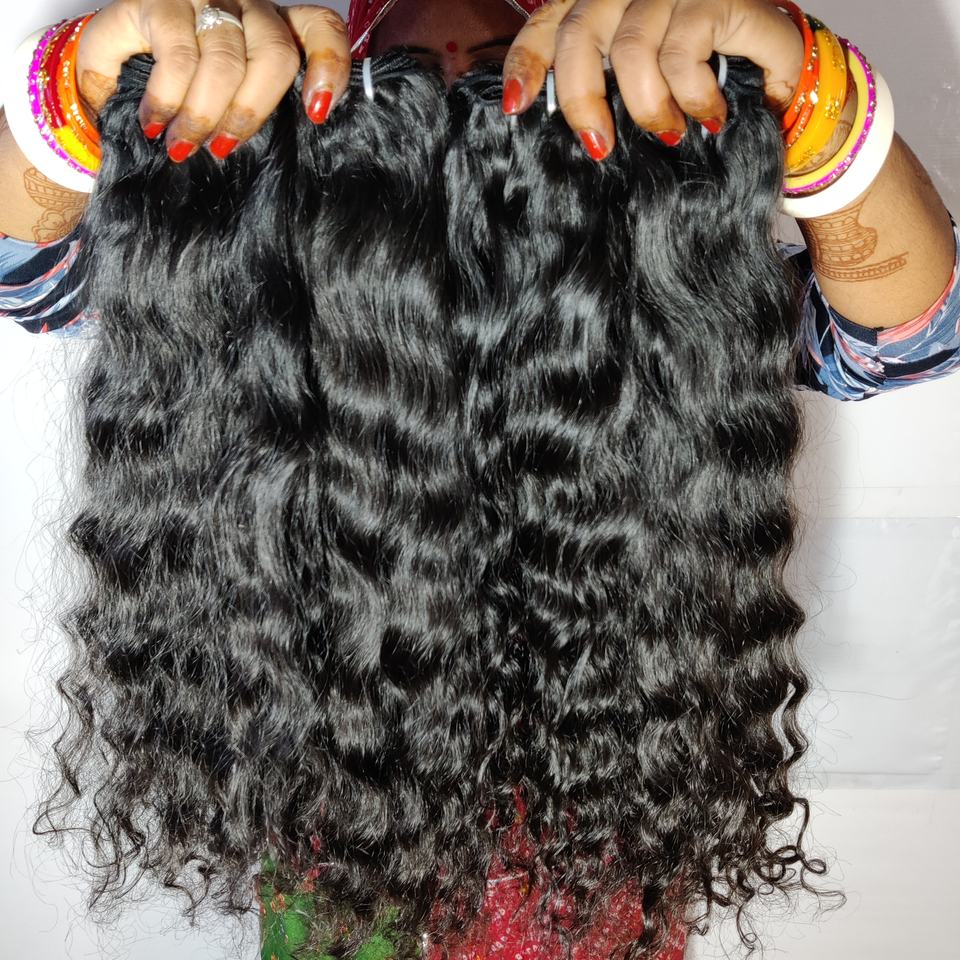 วิกต่อผมมนุษย์สำหรับต่อผมมนุษย์แบบไม่ผ่านกระบวนการผมมนุษย์แบบไม่ผ่านกระบวนการทำผมธรรมชาติแท้แบบ100% ผมเรมี่ลอนสีดำ
