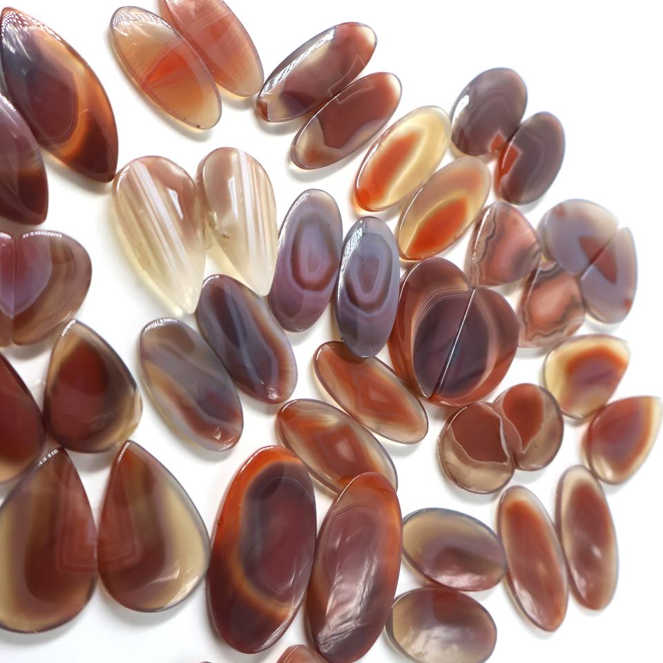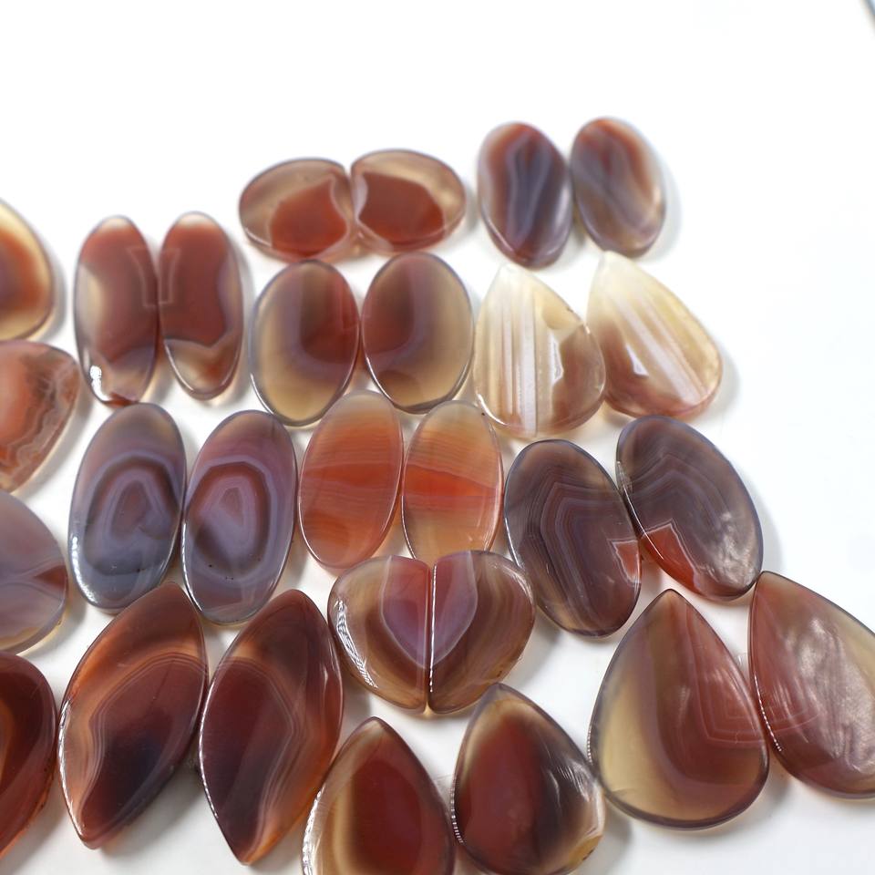 พลอยอาเกตบอตสวานาธรรมชาติคู่ หินหลวมทรงหลังเบี้ย คริสตัลควอตซ์บำบัด ขัดเงาด้วยมือ ขายส่งจำนวนมาก สำหรับทำเครื่องประดับแบบพันลวด