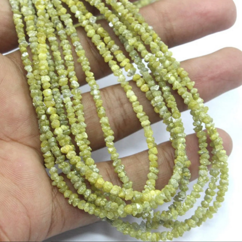 ลูกปัดเพชรหยาบแบบธรรมชาติ100% ลูกปัด/สร้อยคอลูกปัดเพชรไม่เจียระไนลูกปัดเพชรสีเหลืองขนาด2ถึง3มม.
