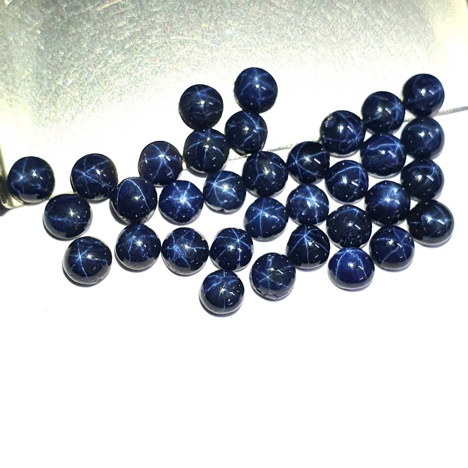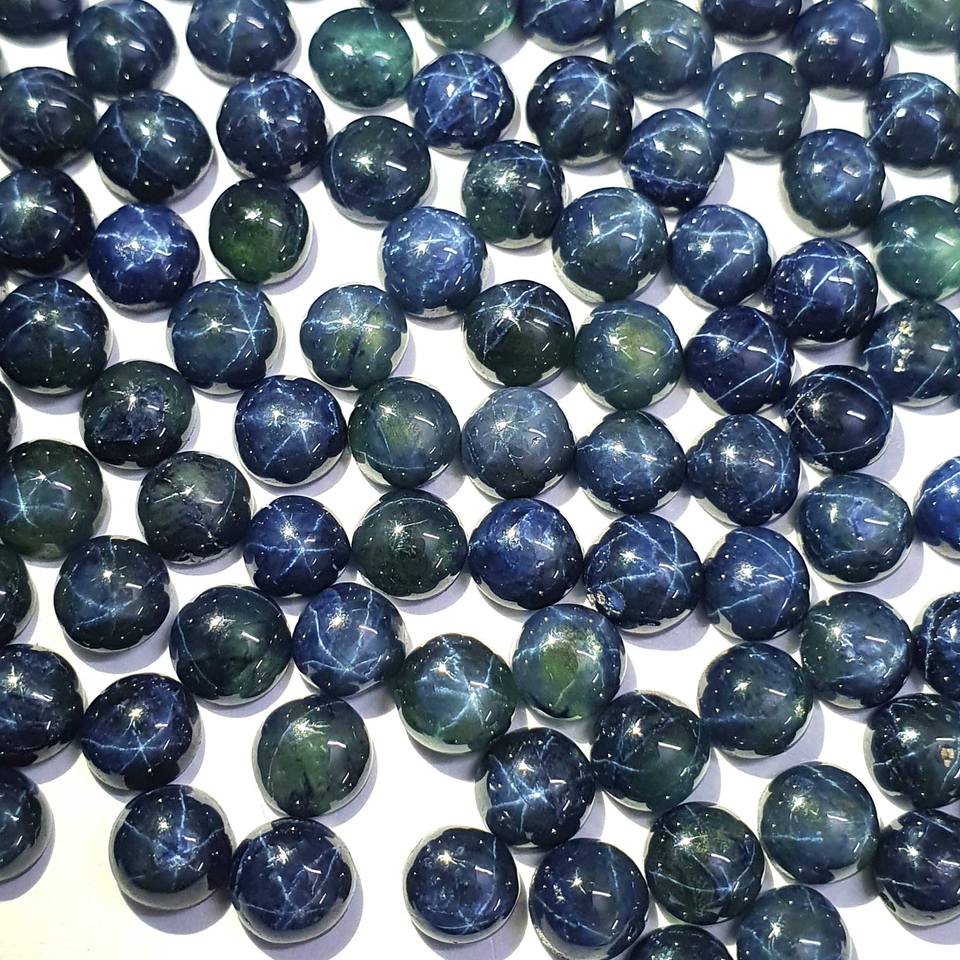 พลอยแซฟไฟร์ทรงกลมรูปดาวสีน้ำเงิน100% 10ชิ้น5มม. 8 CT ไพลินไดออปไซด์รูปดาวไพลิน