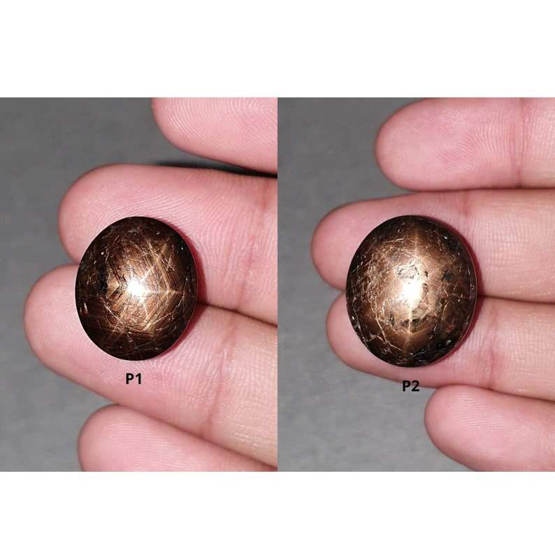 พลอยแซฟไฟร์พลอยธรรมชาติรูปดาว6แฉกทรงวงรี100% สีน้ำตาลทองไม่ผ่านการบำบัด
