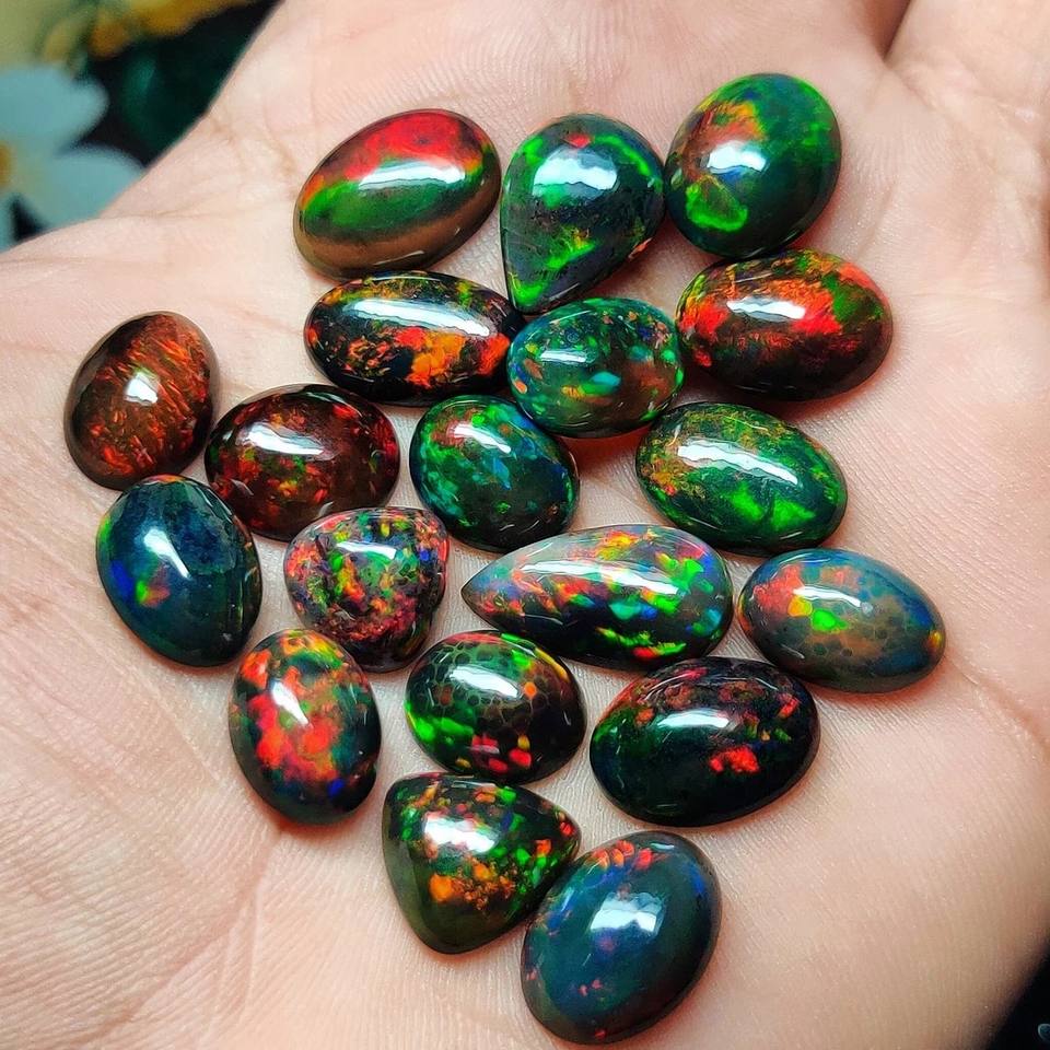โอปอลดำเอธิโอเปียคุณภาพสูง 100% แท้ โอปอลหลากสีธรรมชาติ รูปทรงคาโบชอง สำหรับทำเครื่องประดับ
