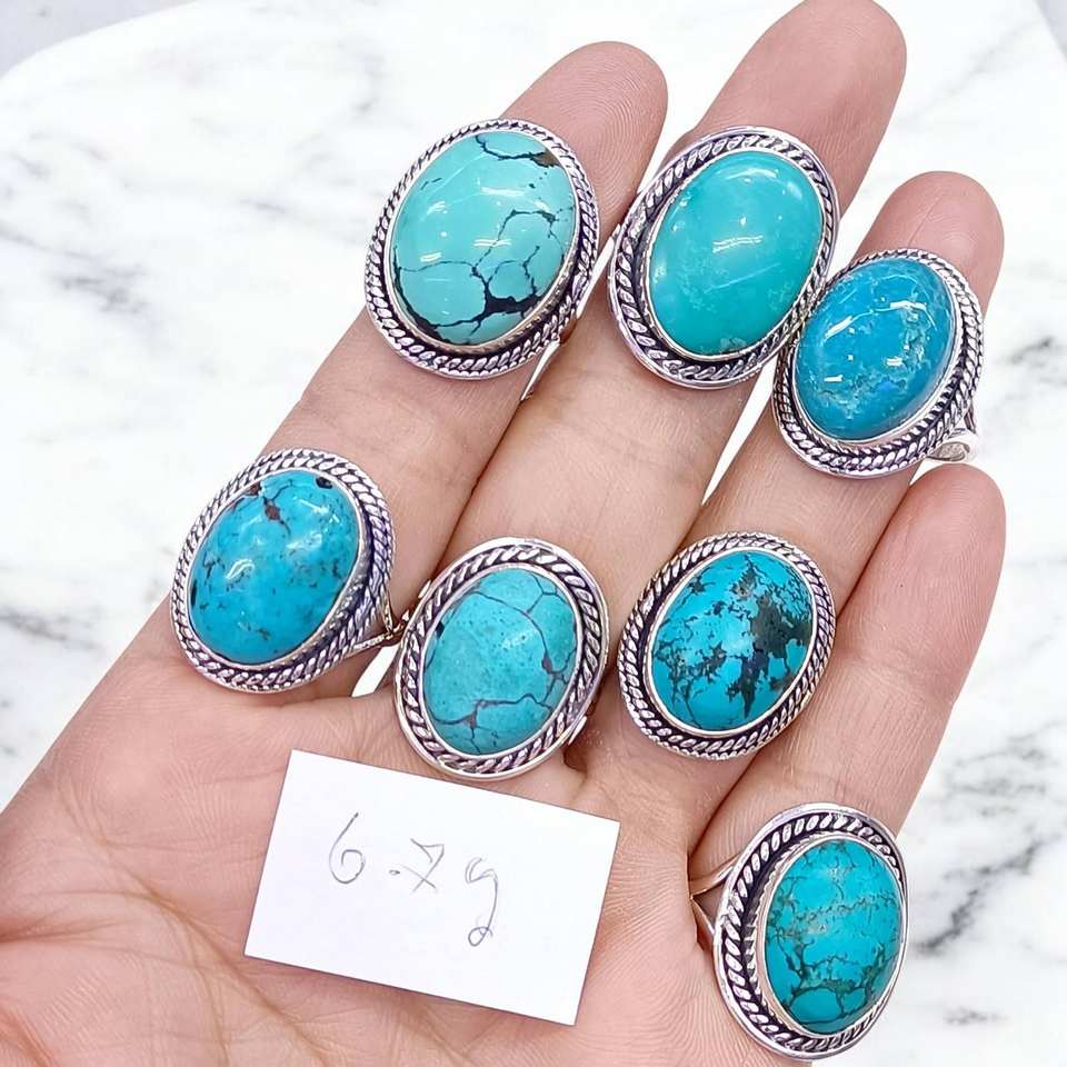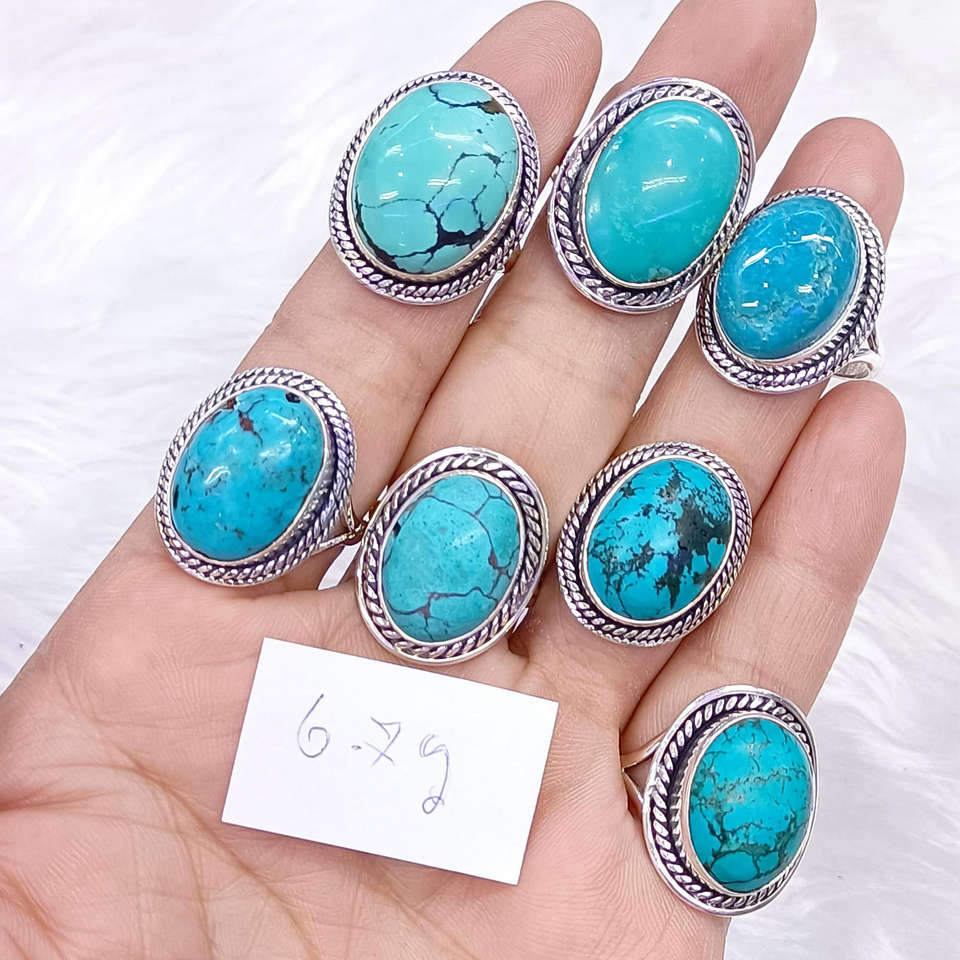 แหวนพลอยเทอร์ควอยซ์แท้ 100% และแหวนเงินแท้ 925 ดีไซน์คลาสสิก ราคาขายส่ง เครื่องประดับเงินคุณภาพสูง