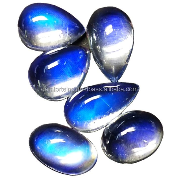 อัญมณีทรงวงรีทรงหลวม100% พลอยสีขาวน้ำเงินแวววาวแวววาวสีขาวธรรมชาติขัดเงาสวยงาม