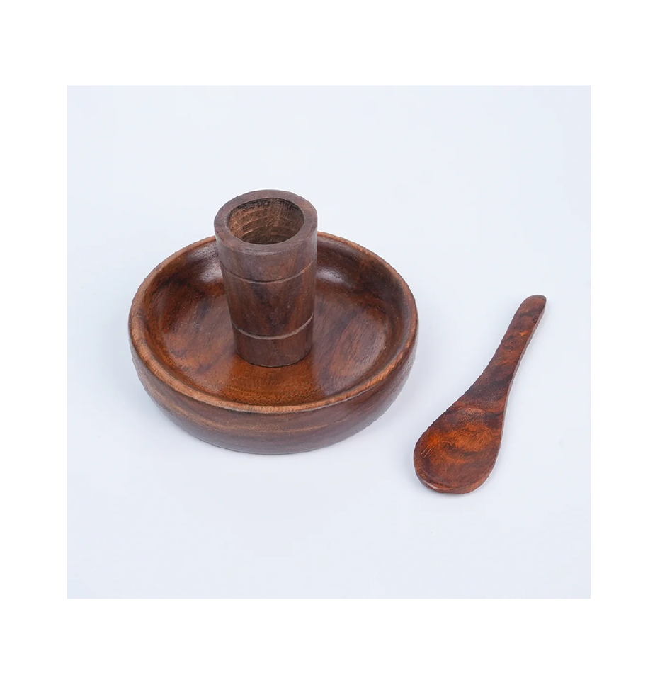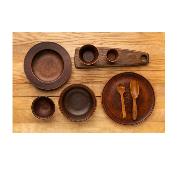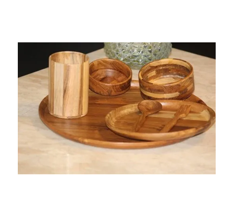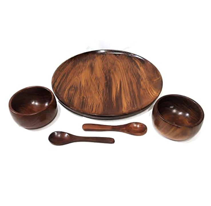ชุดอาหารค่ำไม้ธรรมชาติ100% และชามและช้อนขนาดใหญ่จานไม้2จานขนาดแตกต่างกัน