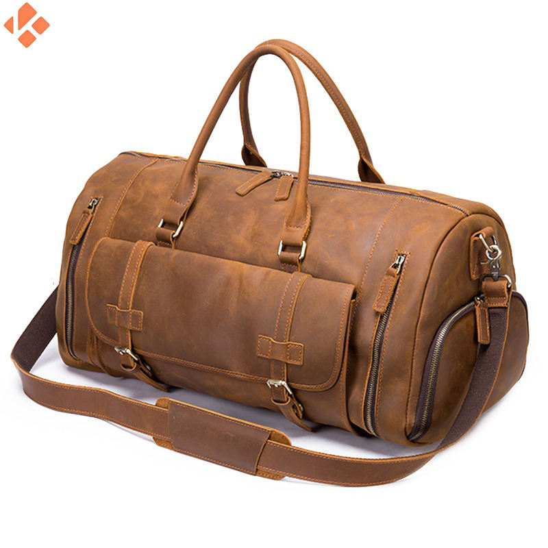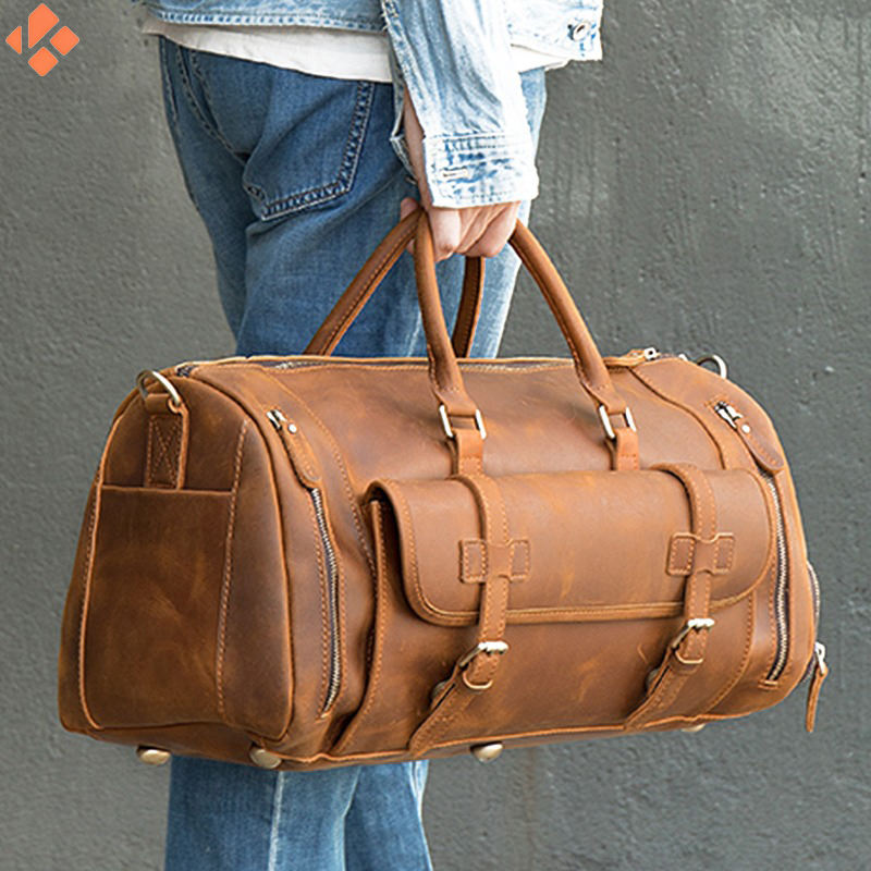 กระเป๋าดัฟเฟิลหนังแท้ความจุมากมาใหม่100% พร้อมช่องใส่รองเท้ากันน้ำกระเป๋าสุดสัปดาห์