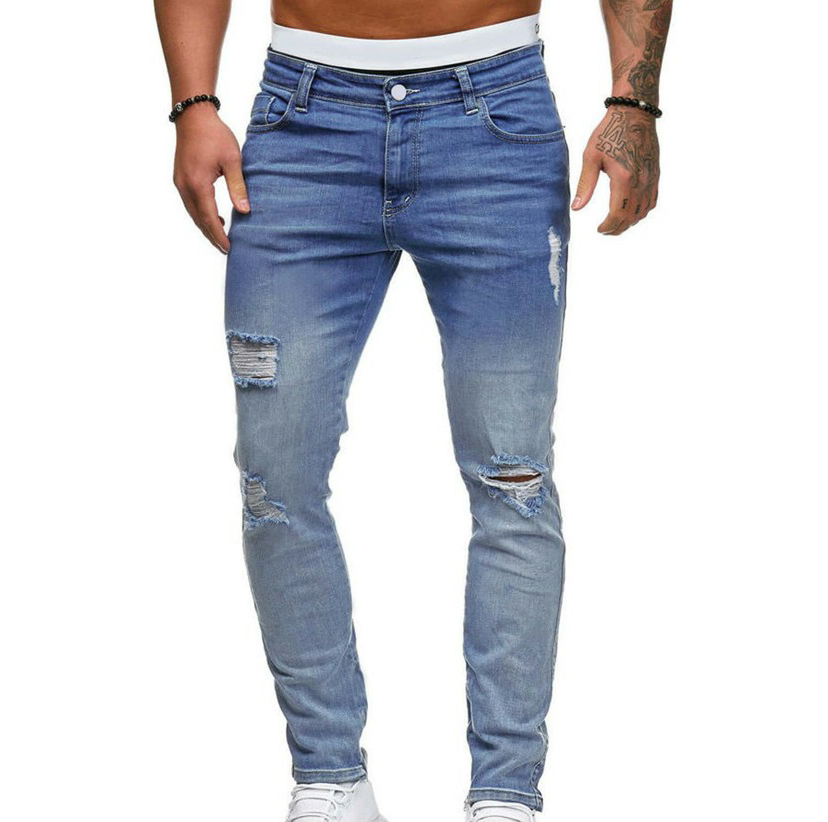กางเกงยีนส์ขาตรงเข้ารูประบายอากาศได้ดีสำหรับทุกเพศดีไซน์ใหม่100%