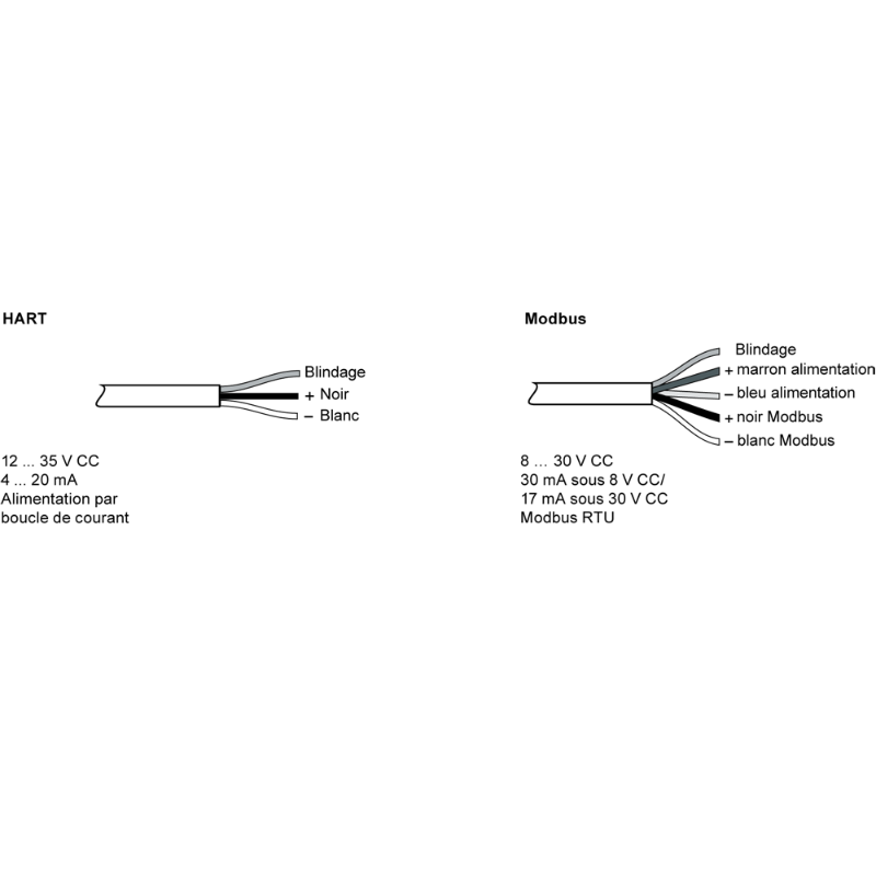 2-wire, 4 to 20 mA/ HART or 4-wire, Modbus