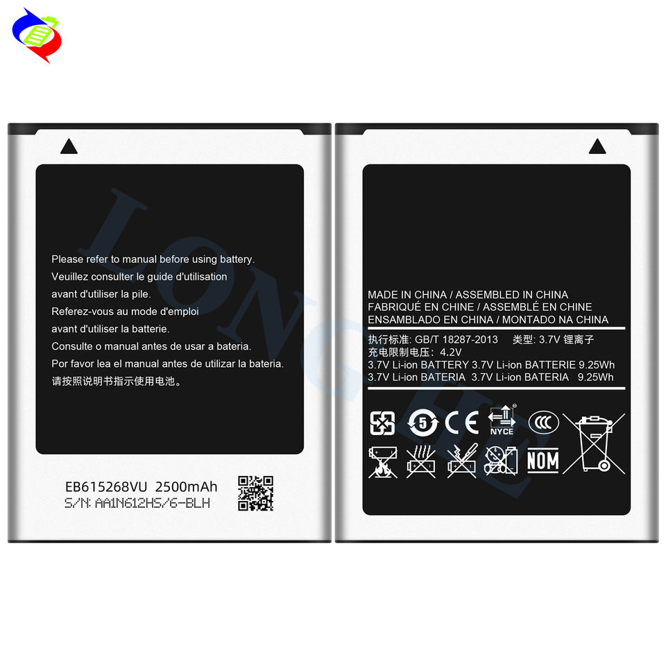 EB615268VU แบตเตอรี่ลิเธียมไอออนแบบชาร์จไฟได้สำหรับซัมซุงโน้ต1 GT N7000 I9220 N7005 I9228 I889 I717 2500mAh 3.7V 100%