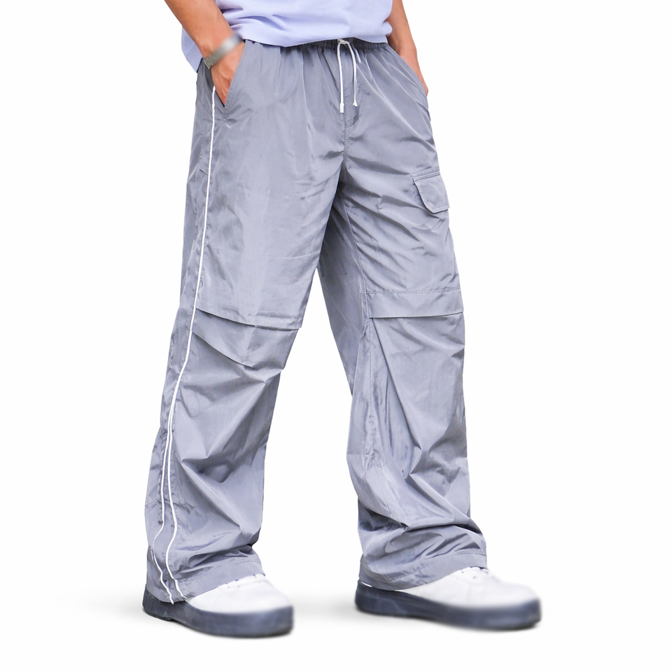 กางเกงแทร็คผ้าไนลอน 100% สำหรับผู้ชาย น้ำหนักเบา เอวยางยืด ทรงหลวม แต่งแถบข้าง ผลิตจำนวนมาก รับผลิตแบบ OEM และติดฉลากส่วนตัว