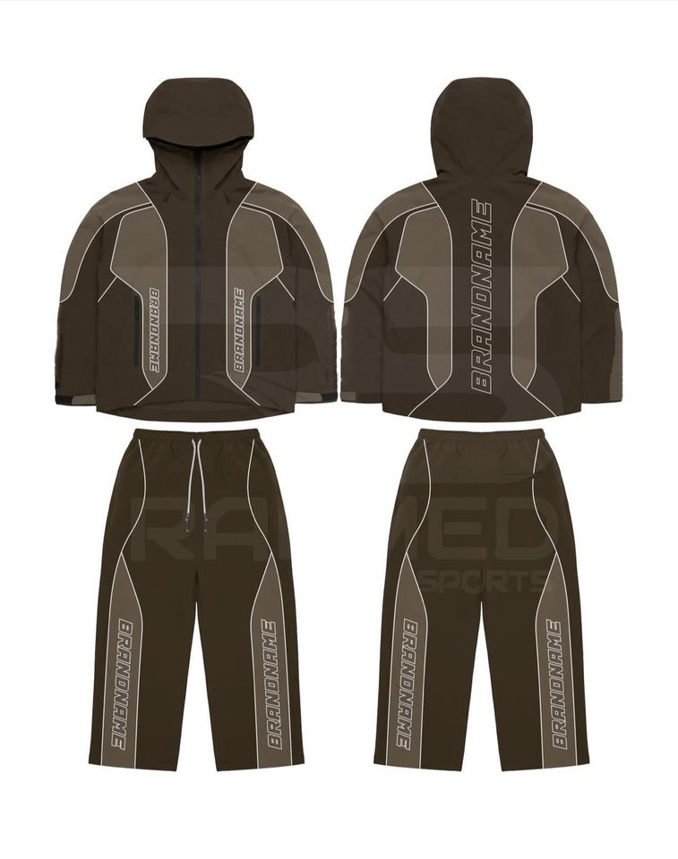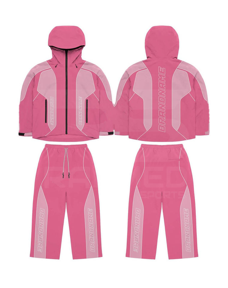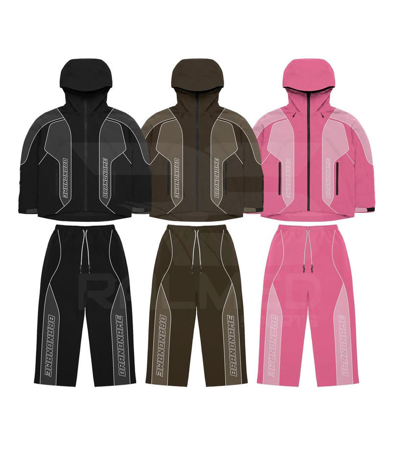 ชุดวอร์มกันลมไนลอน 100% สีต่างๆ กางเกงและเสื้อแจ็คเก็ตมีฮู้ด แถบสะท้อนแสง ชุดวอร์มกันลมสำหรับผู้ชาย
