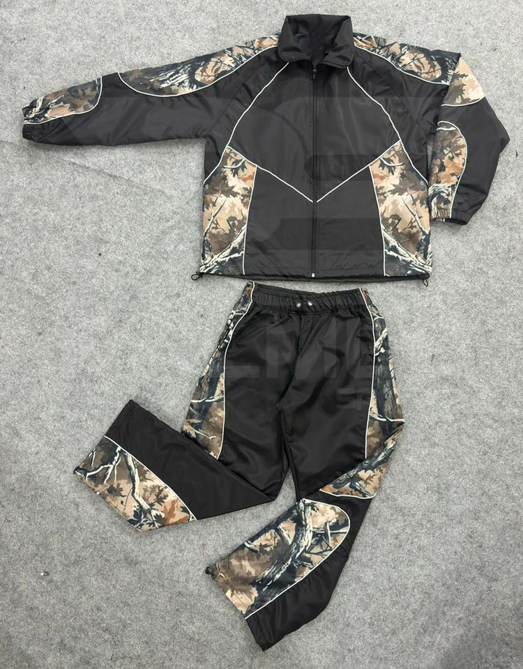 ชุดวอร์มกันลมไนลอน 100% กางเกงและแจ็คเก็ตมีเชือกผูกเอว ลายสะท้อนแสง ดีไซน์ Cmo ชุดวอร์มกันลมสำหรับผู้ชาย