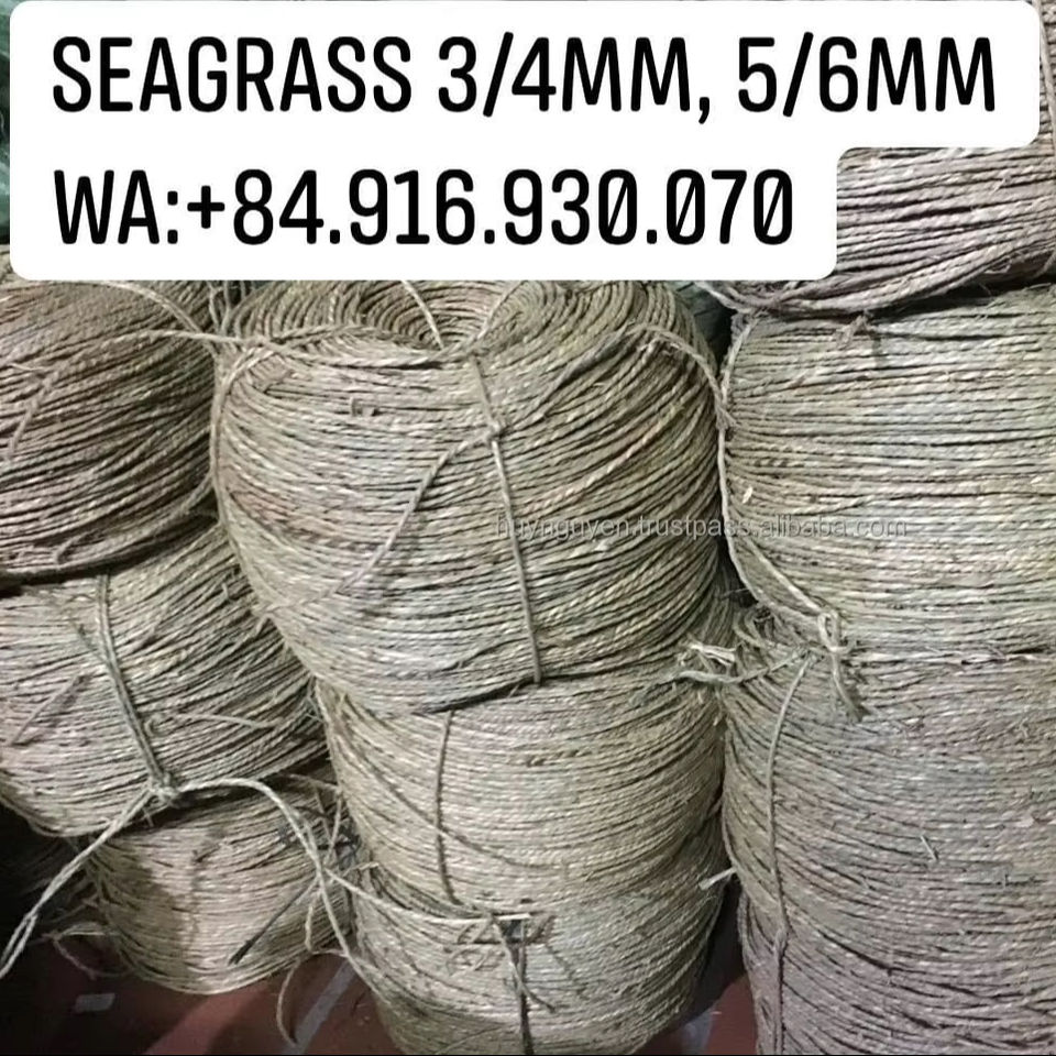 หญ้าทะเลธรรมชาติ 100% ออร์แกนิค ขนาด 5/6 มม. แบบเกลียว ยี่ห้อ HNIECO ราคาถูก ผลิตแบบ OEM งานฝีมือเฟอร์นิเจอร์เวียดนาม น้ำหนัก 25/50 กก.