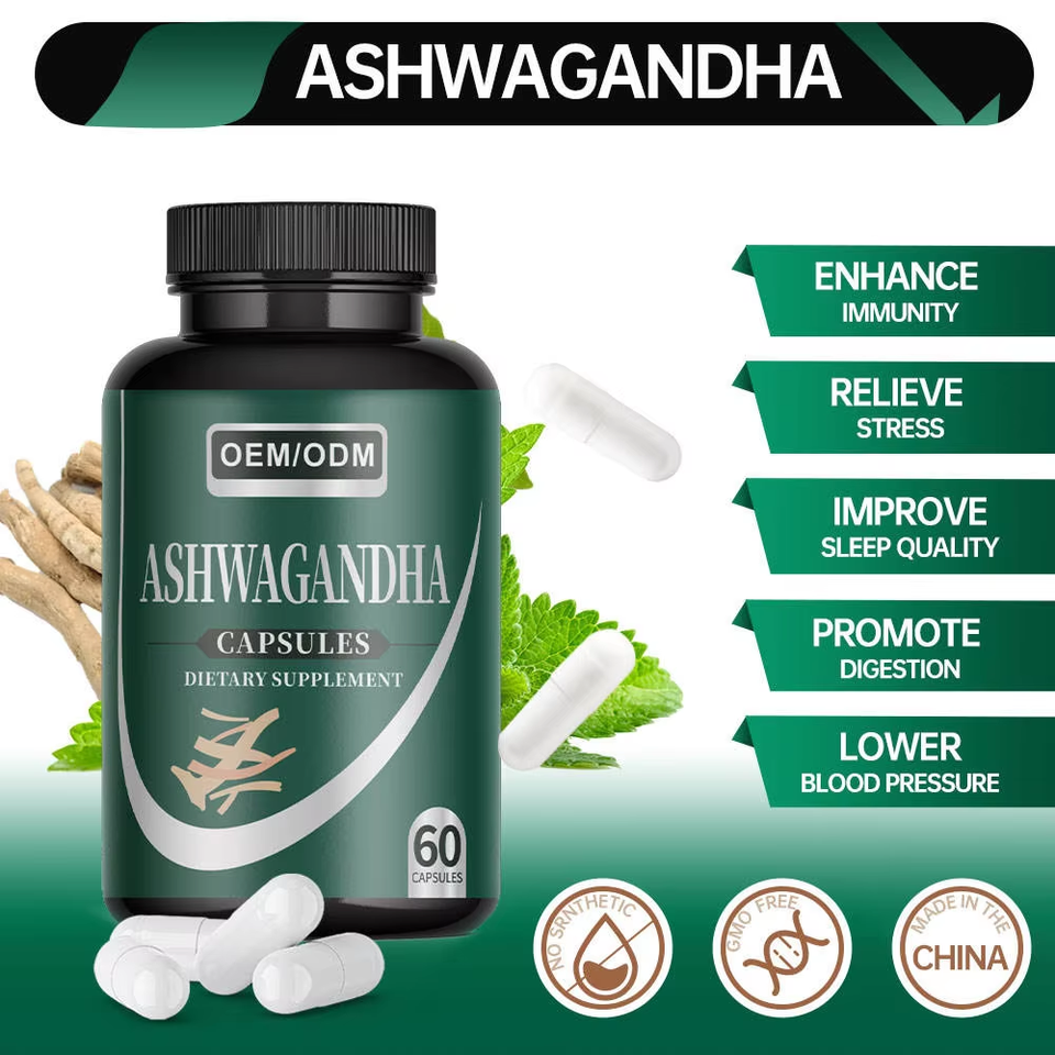 Ashwagandha แคปซูลสำหรับผู้ชายและผู้หญิง, แคปซูล Ashwagandha ออร์แกนิก100% สำหรับเพิ่มพลังงานบรรเทาความเครียดในการนอนหลับ