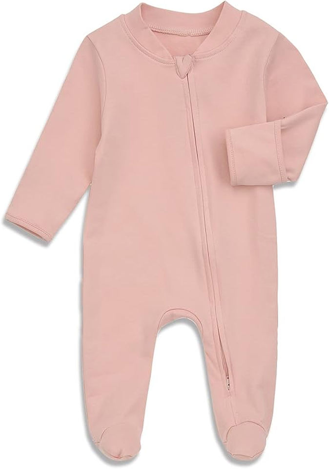 100% Organic Cotton Baby Footed Pajamas With Mittens Newborn Romper Pajama Zip up Onesie Sleeper Baby Footie With Feet Bodysuit