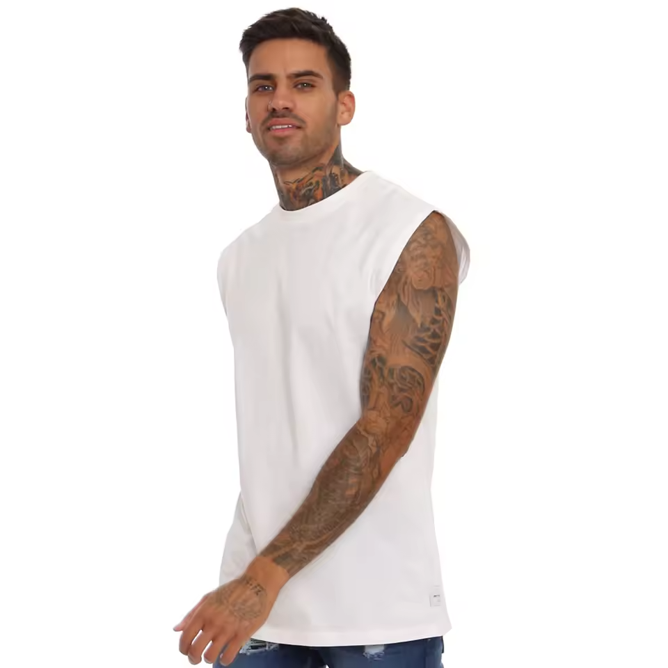 เสื้อยืดแขนกุดผู้ชาย 100% ผ้าฝ้ายออร์แกนิค ขายดี เสื้อยืดออกกำลังกาย เสื้อยืดกีฬา
