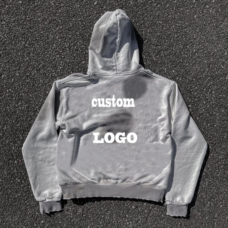 100% มีฮู้ดผ้าคอตตอนออร์แกนิกสำหรับผู้ชายตัดเย็บแบบรูดซิปรูดผ้าฝ้ายเทอร์รี่ขอบดิบ