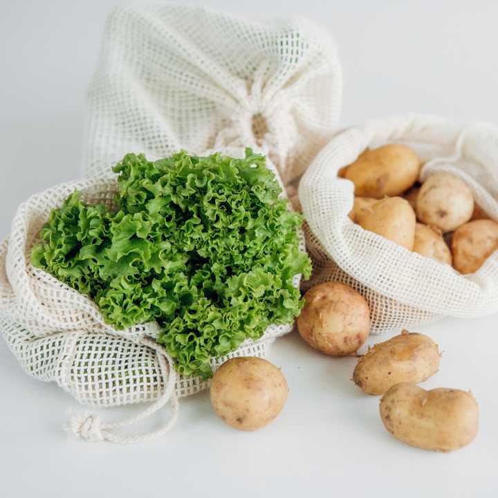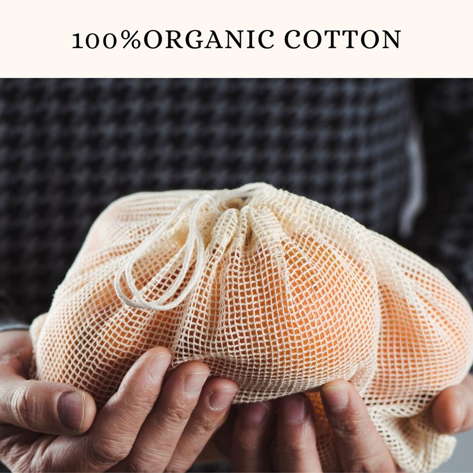 ถุงตาข่ายใส่ผักผลไม้ ขนาดเล็ก 7 นิ้ว ทำจากผ้าฝ้ายออร์แกนิค 100% แบบมีเชือกผูก สำหรับซื้อของชำ รักษ์โลก