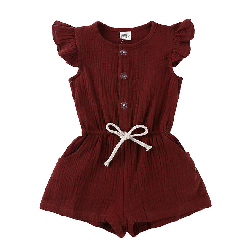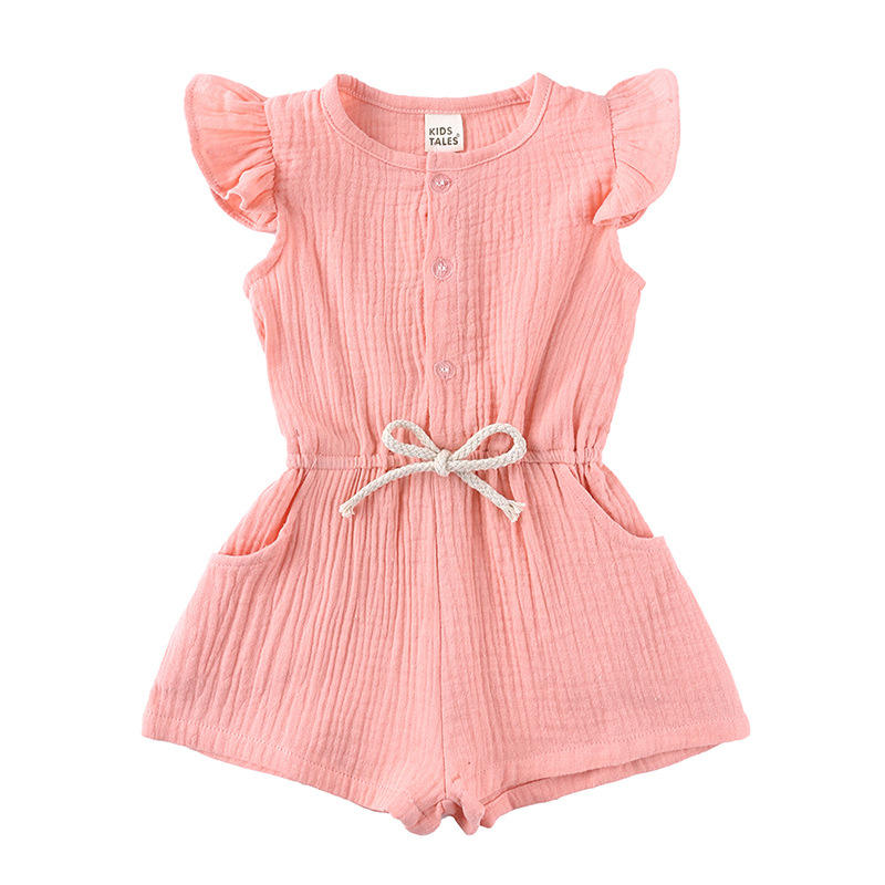 ชุดเสื้อผ้าเด็กผู้หญิงวัยเตาะแตะ ผ้าฝ้ายออร์แกนิค 100% สีพื้น ชุดจั๊มสูทแขนกุดแบบชิ้นเดียว สำหรับฤดูร้อน
