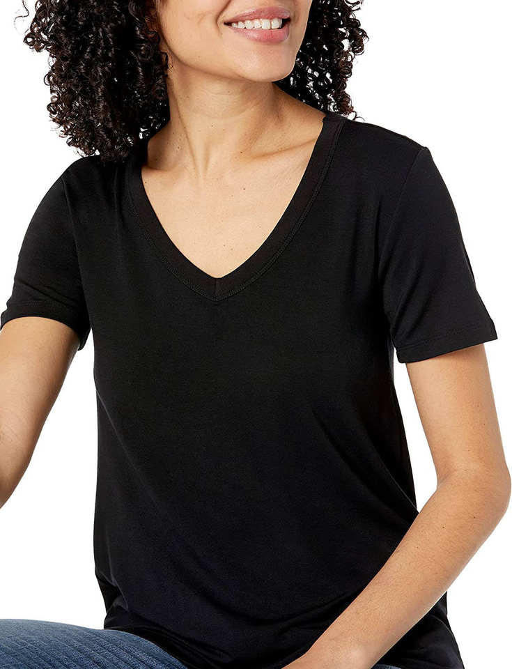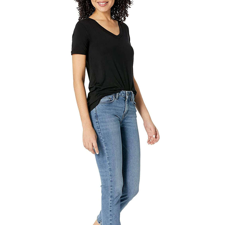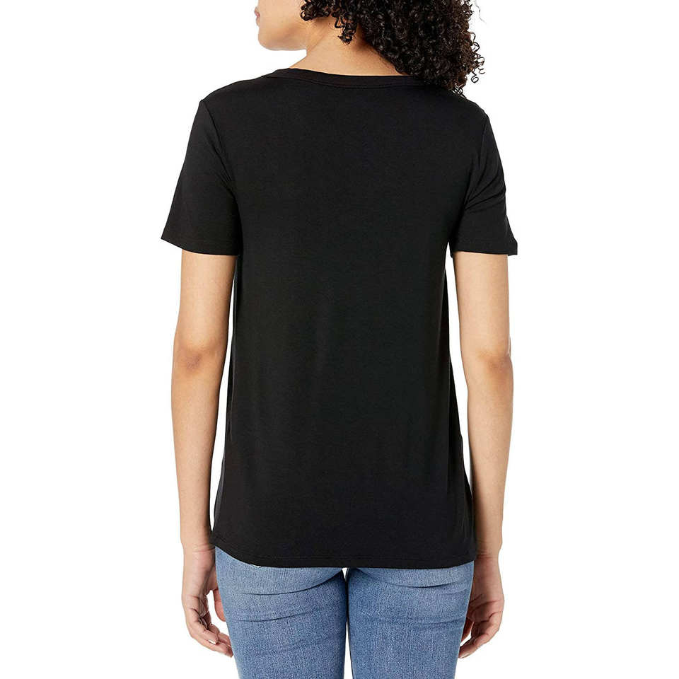 เสื้อยืดผ้าฝ้ายออร์แกนิค 100% สำหรับผู้หญิง สีดำ คอวี ระบายอากาศได้ดี เสื้อผ้าฤดูร้อนสำหรับเด็กผู้หญิงและผู้หญิง เสื้อยืด 2026