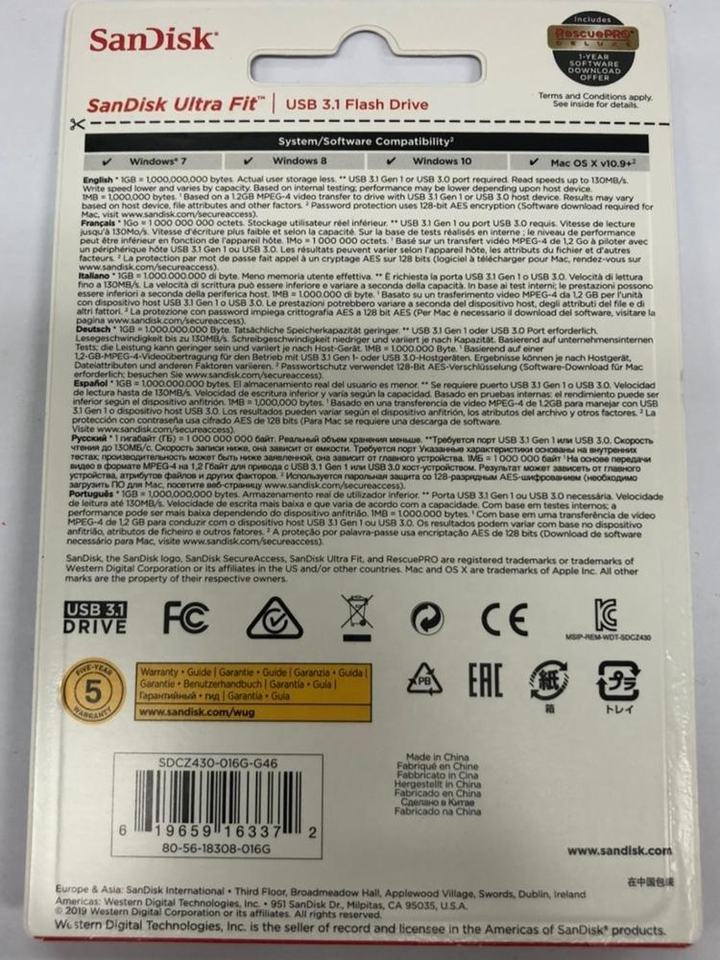 Capacity:16GB, 32GB, 64GB, 128GB, 256GB