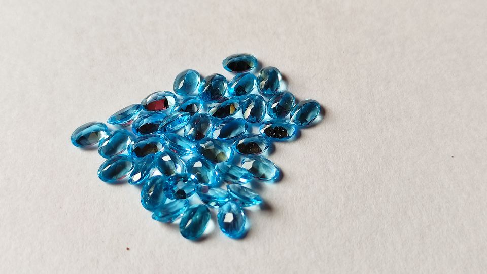 บลูโทแพซควอตซ์แท้ 100% คุณภาพสูง รูปทรงวงรี เจียระไนหลากหลายขนาด สำหรับทำเครื่องประดับ DIY