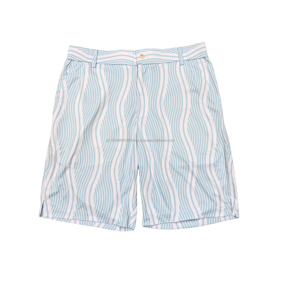 กางเกงขาสั้นโพลีเอสเตอร์100% สำหรับผู้ชายกางเกงขาสั้นเล่นกอล์ฟแบบลำลองกางเกงขาสั้นผ้าพิมพ์ซับลิเมชันรีไซเคิล