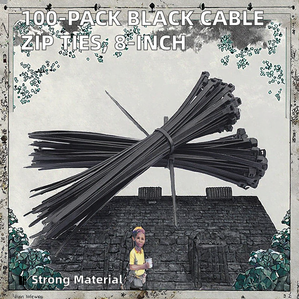 สายรัดเคเบิลสีดำ SZS 100 ชิ้น แบบล็อคอัตโนมัติ ไนลอน กว้าง 5 มม. ยาว 90 มม. สายรัดจัดการสายไฟอเนกประสงค์