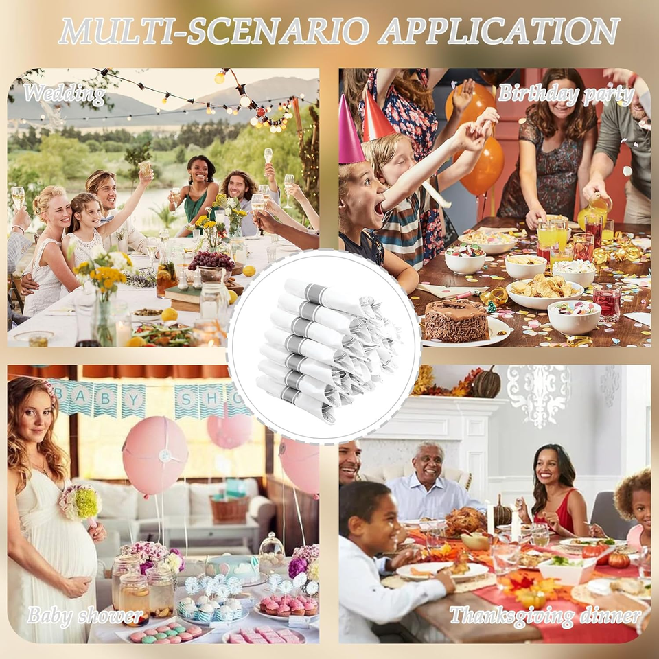 ชุดช้อนส้อมพลาสติกแบบใช้แล้วทิ้ง 100 ชุด ย่อยสลายได้ รีไซเคิลได้ พร้อมผ้าเช็ดปาก ปลอดสาร BPA เป็นมิตรกับสิ่งแวดล้อม แบบคลาสสิก
