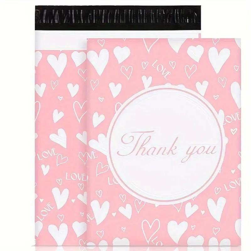 100 แพ็คขอบคุณ โพลีเมลเลอร์ แบ็กส์ 25x33 ซม. ซีลกาวในตัว กันน้ำ ทนต่อการฉีกขาด ทนทาน 2.3M สีชมพู ลายหัวใจสีขาว